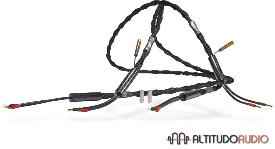 Each Channel of Euphoria Speaker Cables are actually 2 separate runs of Silver Matrix Alloy 2nd Gen cables plus 2 separate runs 99.9999% Silver mono filament in PTFE air sealed dielectric plus 2 separate runs of Tricon 4th Gen cables.