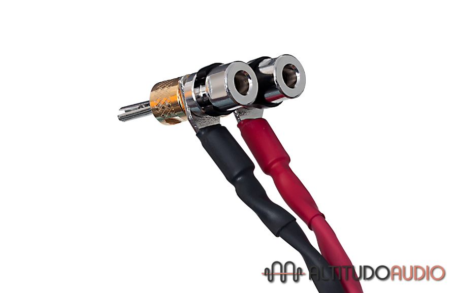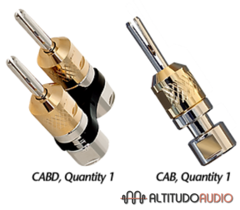 These bananas can be terminated to a cable with solder, or used as a spade (or bare-wire) adapter. See gallery below for these applications.