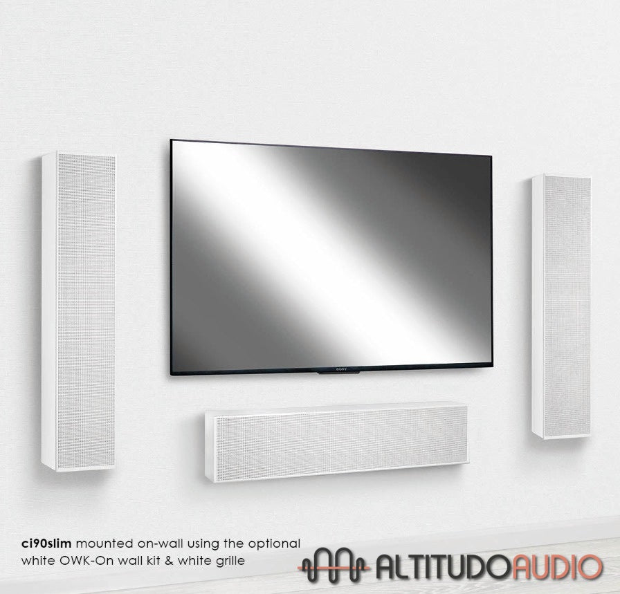 The ci90slim offers the same performance as the ci30 and ci45 in a long, slim cabinet. It is the retrofit option, fitting between standard studwork and excels as an on-wall model accompanying a large flat screen in either stereo or LCR configuration.