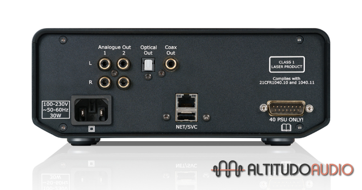 Even when the 40 CD is packaged with our latest custom designed switch mode power supply, improvements are always possible. To further enhance the experience and provide the 40 CD with the best configuration of power, you can easily connect the 40 PSU external power supply to the 40 CD with a single cable. Providing multiple supplies, all of the output voltages from the 40 PSU are digitally controlled internally, so are extremely stable and virtually noise free.