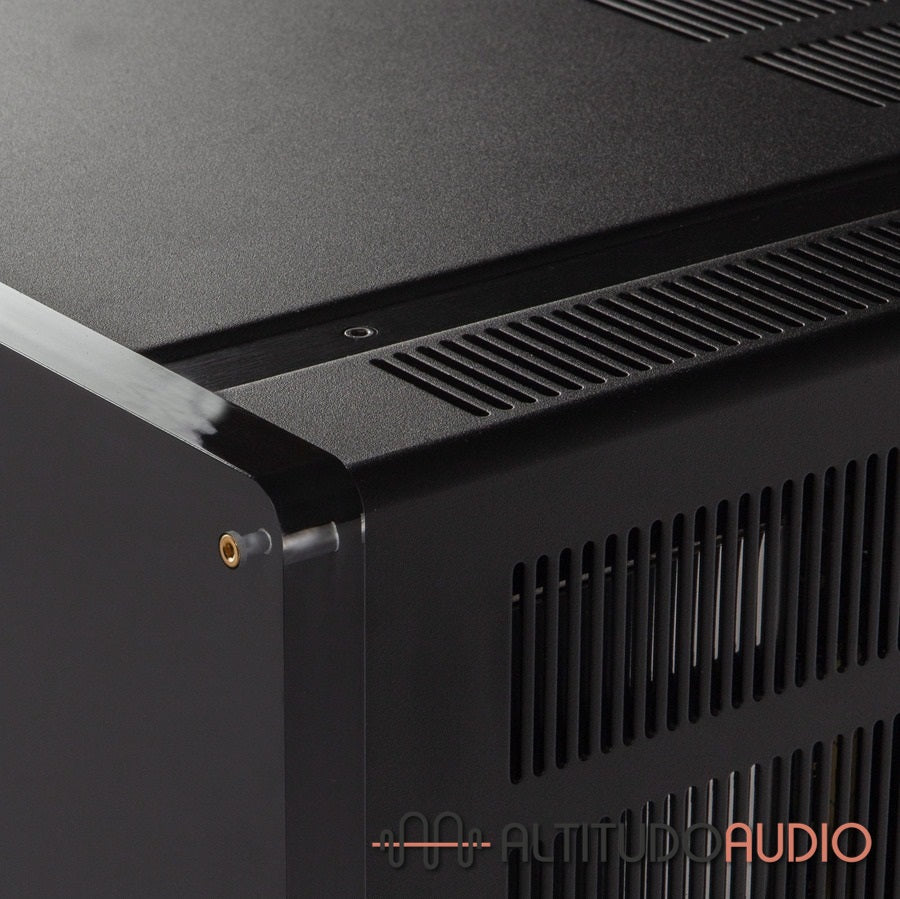 The chassis design is enhanced by two black brushed aluminum rods over the top, which not only gives a much more rigid chassis, but also adds a beautiful decorative element. All housed in a matte luxurious finish that imparts the timeless Electrocompaniet look.