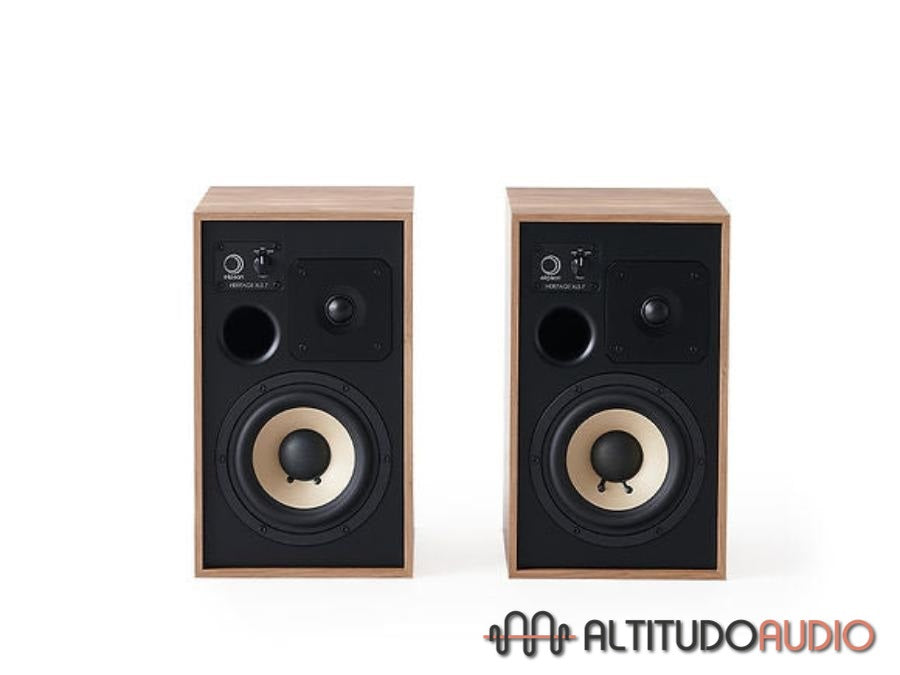 The Elipson Heritage XLS 7 is a compact bookshelf speaker that combines elegant vintage design with high-quality acoustic performance. It is equipped with a 16.5 cm mid/bass driver with a cellulose fiber membrane, guaranteeing deep bass and detailed midrange. Additionally, a 22mm silk dome tweeter ensures accurate and natural treble reproduction up to 25kHz. The speaker also offers adjustable gain for the treble, allowing for sound customization. The solid reinforced MDF design with a walnut finish, combined with a bass-reflex system, minimizes vibrations and allows flexible integration into various environments. With a recommended amplifier power of 30 to 120 W and a frequency response of 49 Hz to 25 kHz,