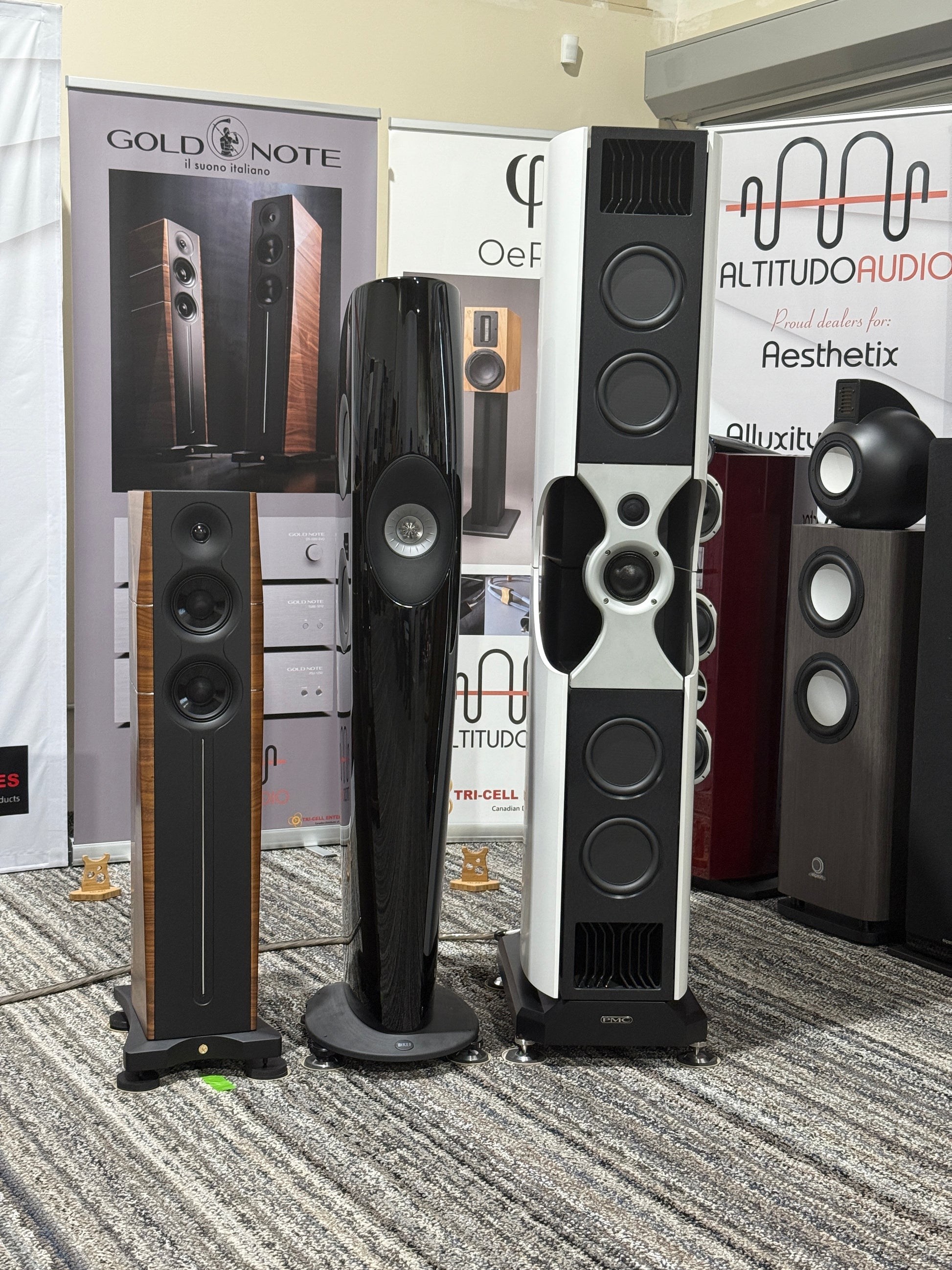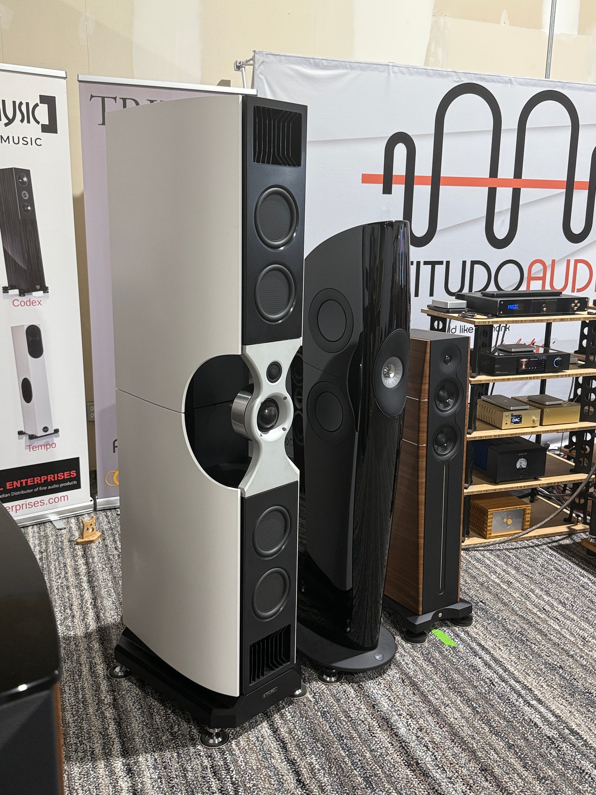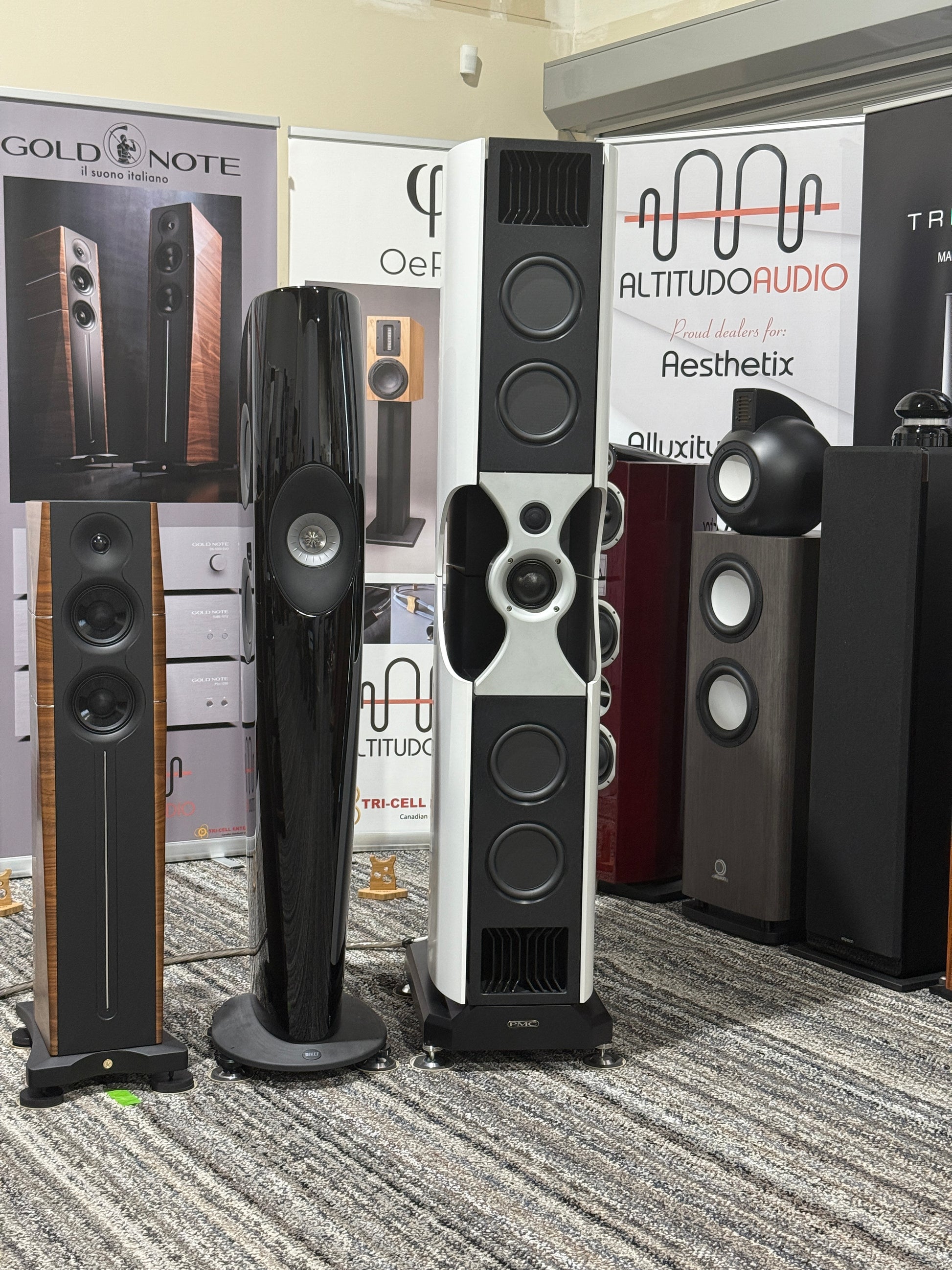 Ā Ā Ā Tiger Ebony, Rich Walnut, White Silk 3.8kHz & 380Hz Ā H 1700mm (66.9ā) x W 370mm (14.6ā) x D 623mm (24.5ā) including binding posts Ā LF ā 6.5ā transverse-weave, carbon-fibre, multicellular-core piston driver 2 x 2.4m (7.9ft) 23Hz - 25kHz 4 Ohms Hex-Rhodium 4mm binding posts (3 pairs) accepting 4mm plugs, spades & bare wire Ā 86dB @ 1W, 1m