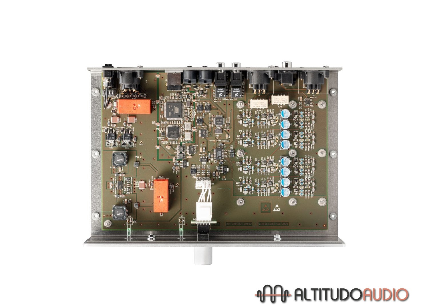 Input signal processing: The frerot has one USB, two RCA and two Toslink inputs. The USB input is based on Amanero technology and ensures a low-jitter music signal thanks to two precise oscillators, which is additionally galvanically isolated by capacitive isolator components. The signals arriving at the other inputs are also galvanically isolated and de-jittered by means of transformers. This guarantees that no external interference can affect the sensitive signal.