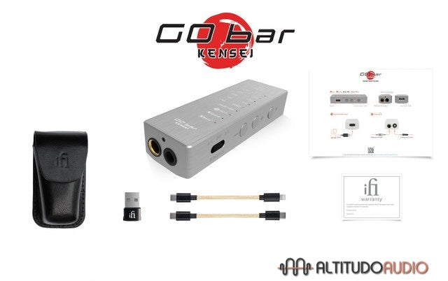 As iFi's top ultraportable device in the GO series, Kensei's included accessories are designed to give you everything you need.Apple users will love the bespoke Lightning to USB-C cable, engineered by iFi so you donāt need to add Appleās Camera Adapter dongle to use the GO bar with iOS devices, as you do with other USB DACs.