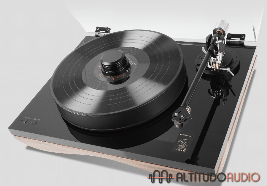 Mediterraneo is the pinnacle of Gold Note: a creation that redefines the traditional design of turntables through innovative shapes, technical solutions and quality materials to merge tradition and technology and achieve the best musical experience. Mediterraneo shows Italian flair and distinction in its strong Tuscan origins, combining beauty with the greatest attention to technical perfection. Manufactured by local craftsmen, the Mediterraneo is fully hand-made: designed with a 60mm curved plinth made of aged Italian Walnut chosen for its exceptional elasticity, strength and high-density, then coupled with a 20mm board made of polished acrylic and finally reinforced with a 3mm stainless steel board to lower the frequency resonance. Every detail of Mediterraneo enhance the turntable’s ultra-rigid structure, the result is a refined technical innovation achieved through elegant, smooth lines.