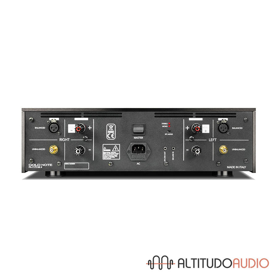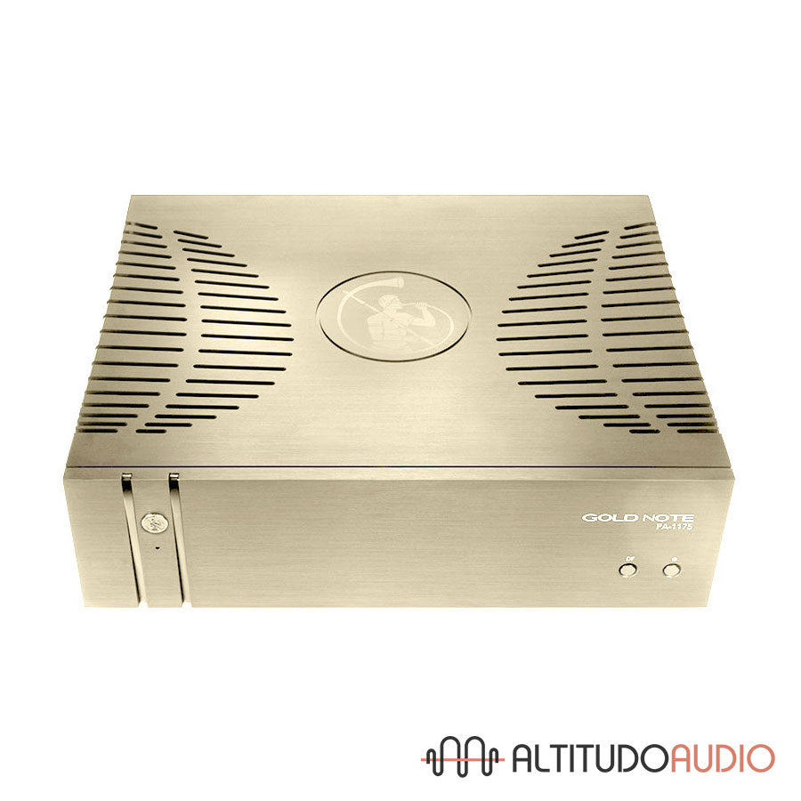 The Optical BIAS controls the voltage of the unit and features optical decoupling to overcome the downgrading solutions of traditional electronics. Analysing optically the signal while it gets completely separated from the audio signal path assures the highest protection and unbeatable performance. The PA-1175 MkII is built to minimise RFI and EMI (interferences), using massive panels of high-quality aluminium that feature the unmistakable Gold Note curved vent design. The BTL technology (Bridge-Tied-Load) allows the unit to be easily bridged in order to work as a mono amplifier. The remarkable 200W @ 8Ω per channel in stereo mode grow up to a considerable 520W per channel in mono. Pushing further the pure audio performance, it allows the PA-1175 MkII to drive easily the most demanding power speakers on the market.