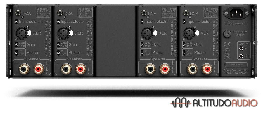 Special features: Balanced and unbalanced inputs, Trigger in/out, Modular design, Adjustable rear rack mount, Gain & Phase selectors