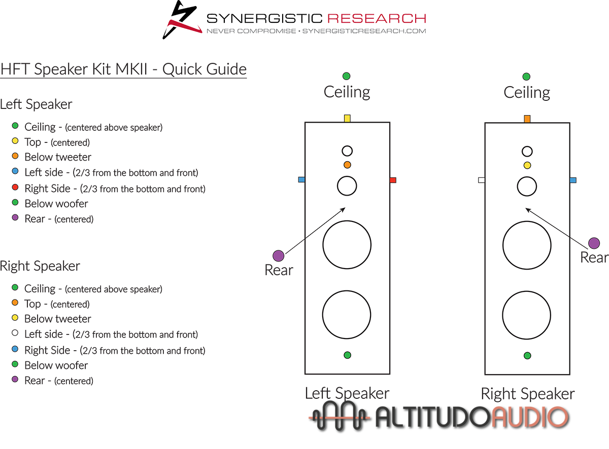 For those familiar with the original HFT speaker kit, the Mk2 HFT Kit will be quite familiar. There are still six HFTs to place on various parts of the speaker and a seventh to install on the ceiling above the speaker. However, the placement of the various HFTs. The biggest change is that there are now six types of HFT in the Mk2 Kit, allowing for refined precision and far more potency. In fact, Synergistic developed an entirely new HFT specifically for the rear of the speakers, one that's half the height of a standard HFT and half the width of an HFT Wide. When installed, these hybrid HFTs generate an impressively realistic and well-formed soundstage.