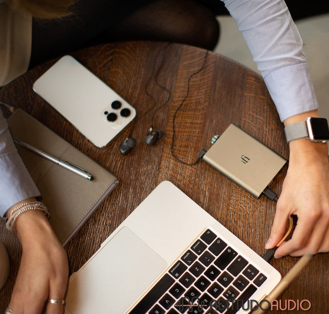 Two USB-C ports now simplify your cable management: one for audio and the other for charging. A switch on the underside activates iFiās iEMatch technology, which is optimized for high-sensitivity headphones and earphones, making it especially beneficial for your in-ear monitors (IEMs).