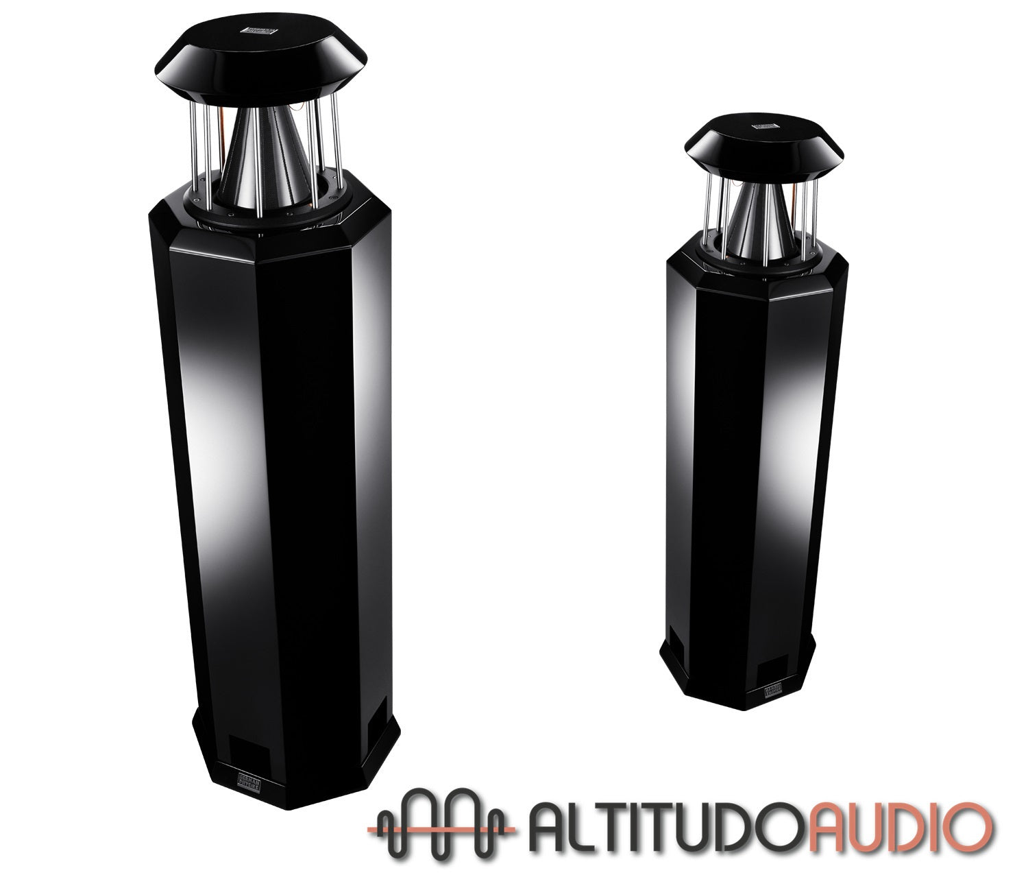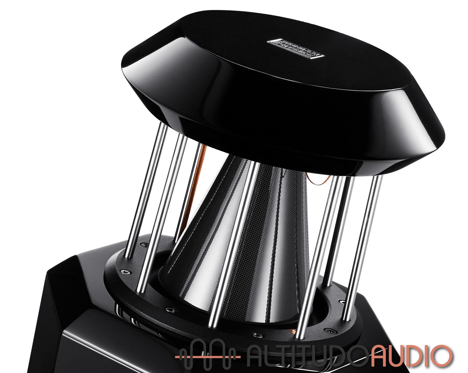 The HRS-130 Loudspeaker uses a single carbon fibre German Physiks DDD driver mounted on top of a slim, octagonal, floor standing cabinet, with a downward firing 10-inch woofer set in its base