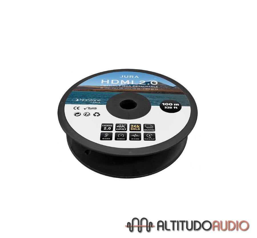 The detachable NorStone Jura HDMI 2.0 optical fiber cable was developed to meet the requirements of the HDMI 2.0 and HDMI ARC standard. It is therefore compatible with the transport of UHD/4K 60Hz HDR (2.0b=18g/sec), Full HD or 3D video streams over distances up to 100m, as well as 7.1 audio streams in high definition. The cable is specially designed to be integrated into your cable glands thanks to a detachable side.