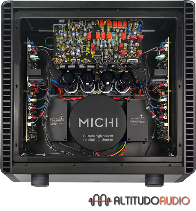 Elegant, efficient, uncompromising. The Michi apt-X HD, PC-USB with MQA and even turntables equipped with your favorite moving magnet (MM) cartridges.