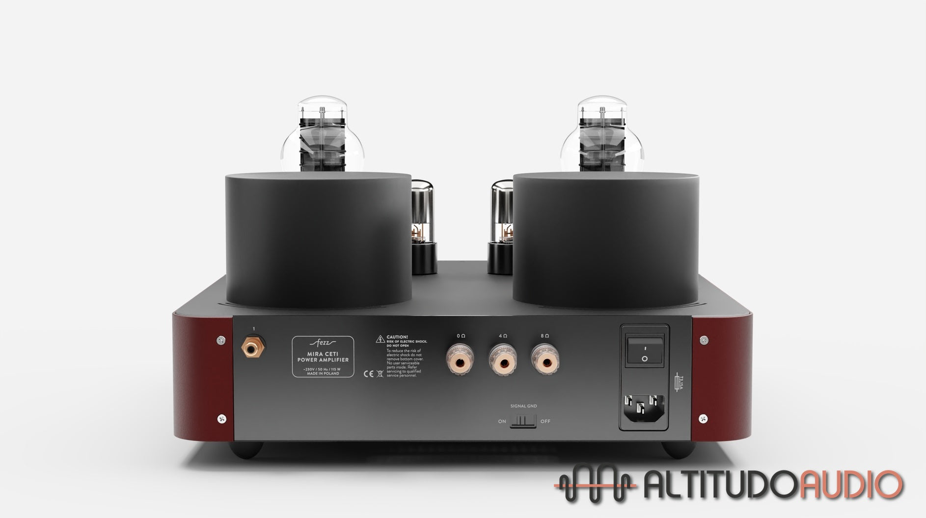 New Mira Ceti 300b mono power amplifier A-class is based on legendary direct heated triode 300b vacuum tubes. In standard equipped with anti-vibration feet, adapted to the weight of the device. Backlight logo. Thanks to PSE Parallel Single Ended circuit archtecture and specialy designed output transformer it provides 15W and low THD distortions. Match with dedicated Sagita line pre-amplifier guarantee outstanding sound performace for a reasonable price.
