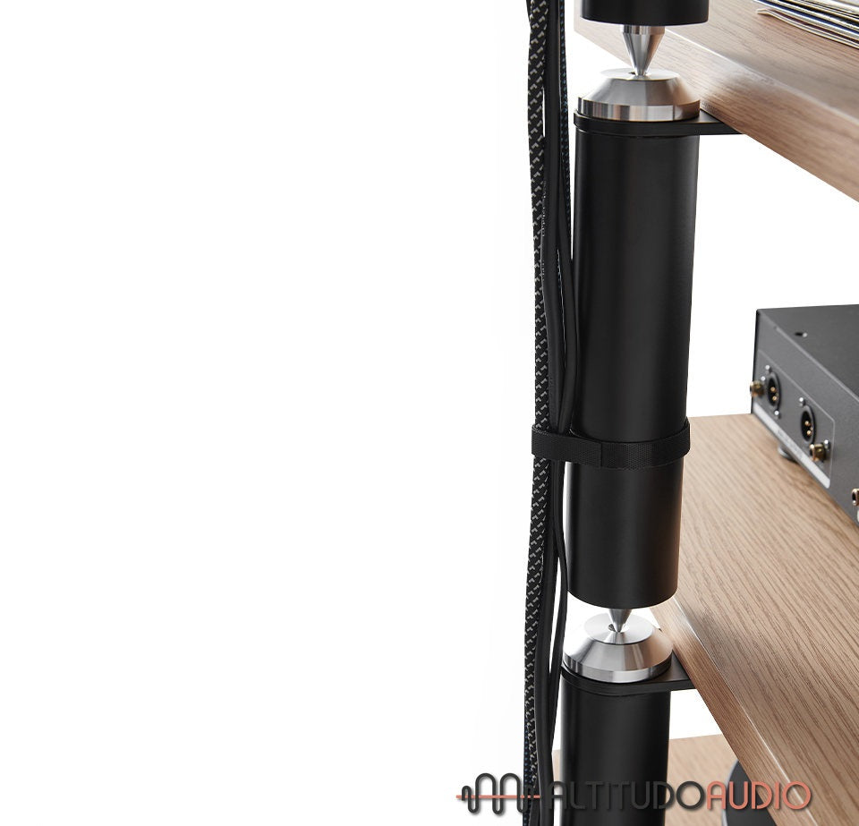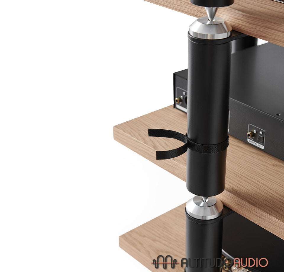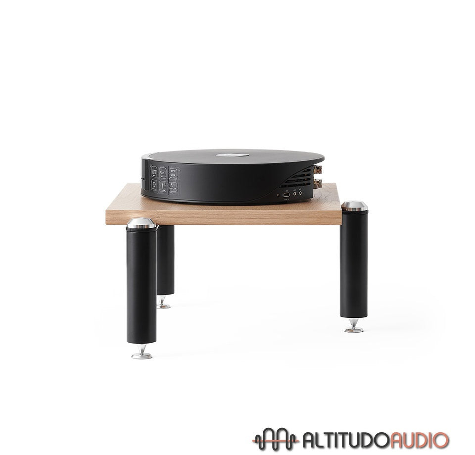 Module 1 of the Copenhagen cabinet, with a useful height of 230 mm, is perfect for amplifiers or other compact Hi-Fi equipment. Its top-of-the-range design combines a solid metal structure for added stability with oak tops for a natural, elegant touch. It comes complete with spikes and counterspikes to limit vibration and ensure optimal listening.