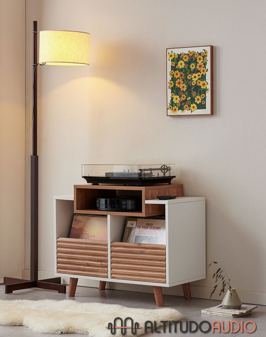 Available in two finishes - White/Light Oak and Black/Walnut - the Oslo 800 has two spacious drawers, each capable of storing up to 80 vinyl records. The Oslo 800 has a dedicated 46 cm space under the turntable, ideal for placing your amp or other audio equipment. The top surface is designed to accommodate a vinyl turntable, making this all-in-one piece of furniture the perfect complement.