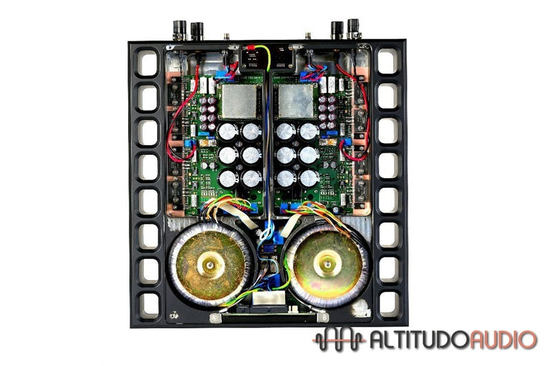 The Power One is, as the Pre One, fully balanced with a 600VA toroidal transformer per channel that powers their very discrete gain module.