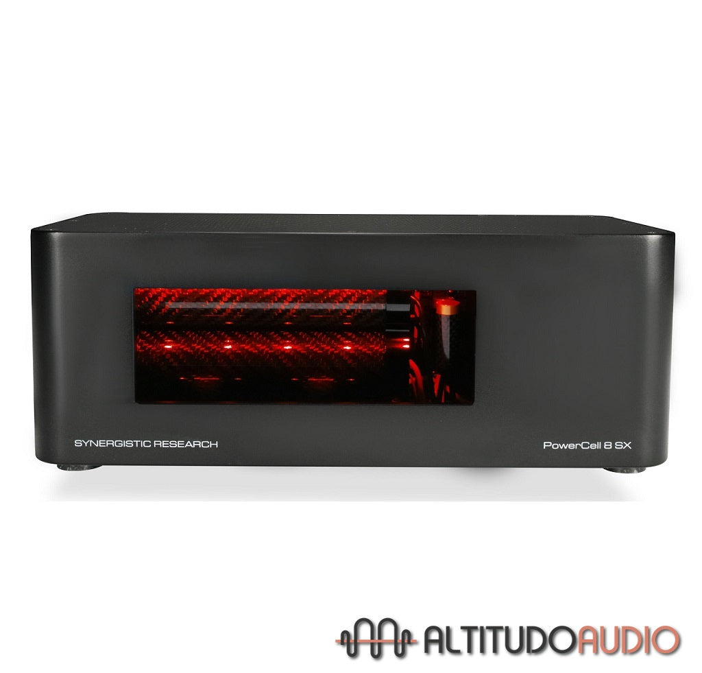 The Synergistic Research PowerCell 8 SX reimagines power conditioning by incorporating every available technology from our portfolio into a compact, ultra-performance unit. Engineered from a clean slate, it brings together an array of advanced features within a sleek, solid chassis crafted from machined aircraft aluminum and carbon fiber to control resonance; it’s form dictated by its role as one of the world’s highest-performance non-current limiting line conditioners.
