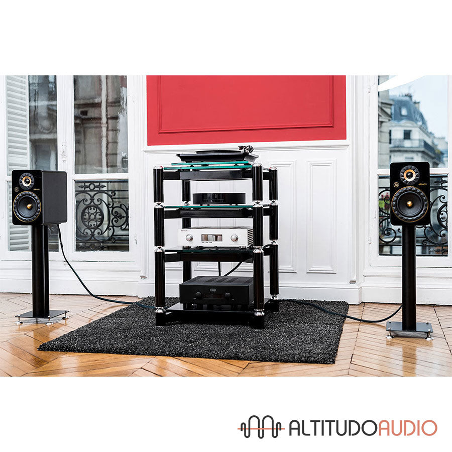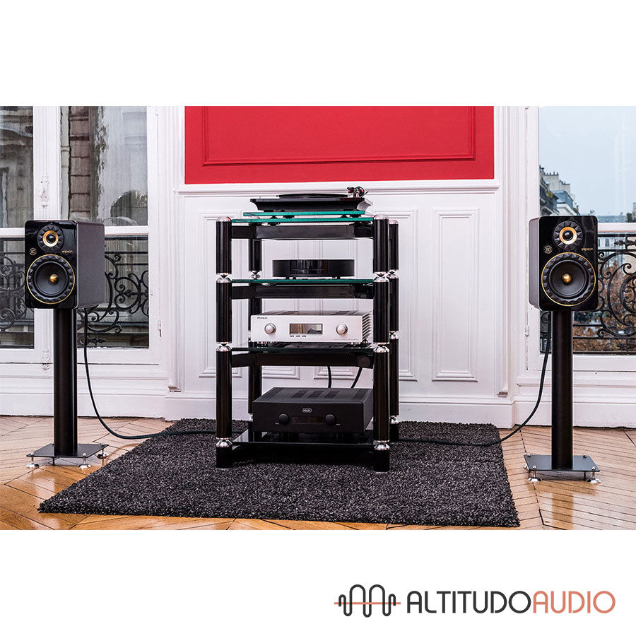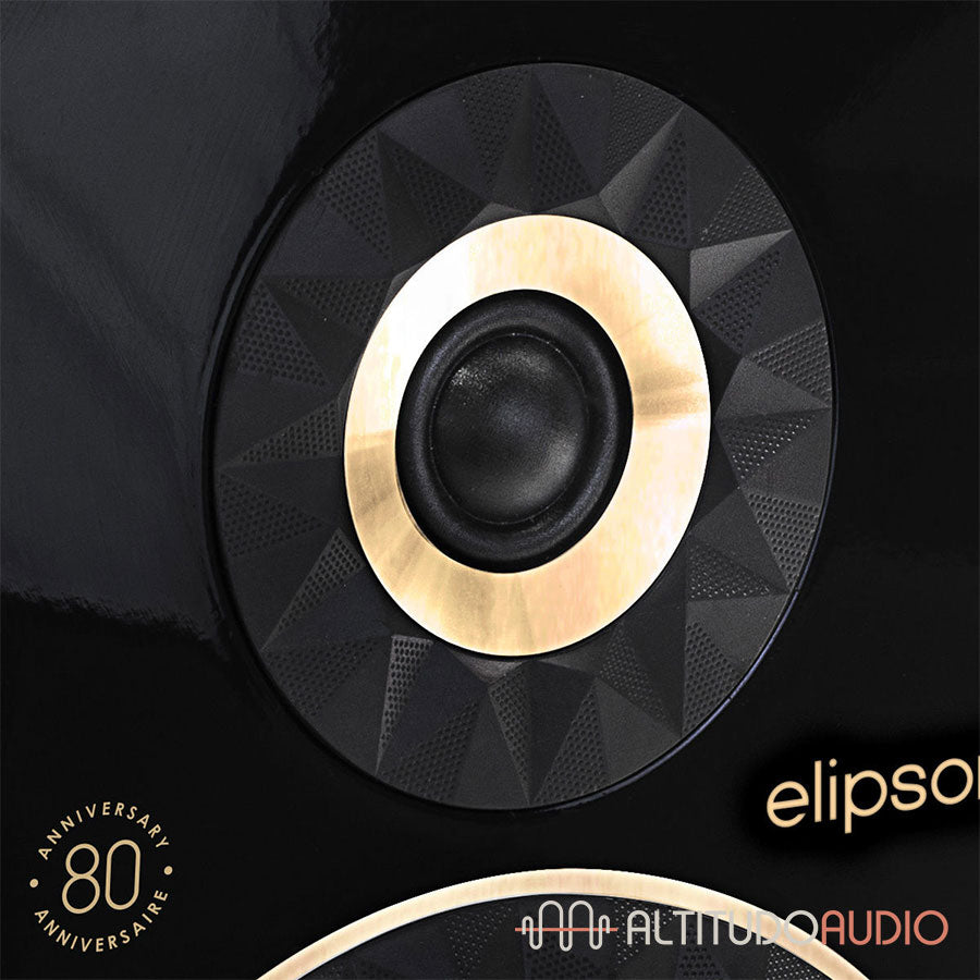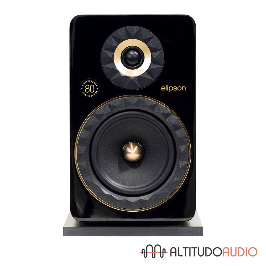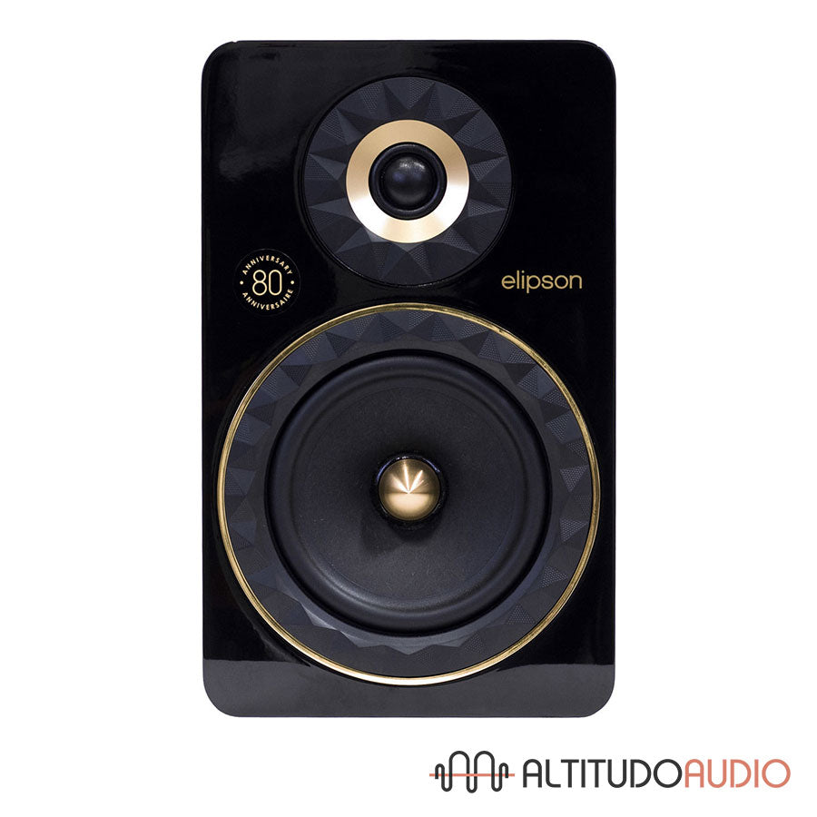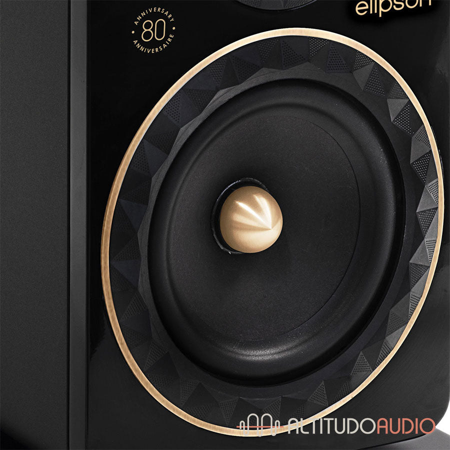 The Elipson Prestige Facet 8B 80th Anniversary compact loudspeakers celebrate the 80th anniversary of the French high-fidelity brand Elipson and are only sold in 200 units. For the occasion, they adopt a beautiful matte black and gold finish, and also benefit from an upgrade of the loudspeaker filtering, with audiophile components that are more high-end than on the standard version.