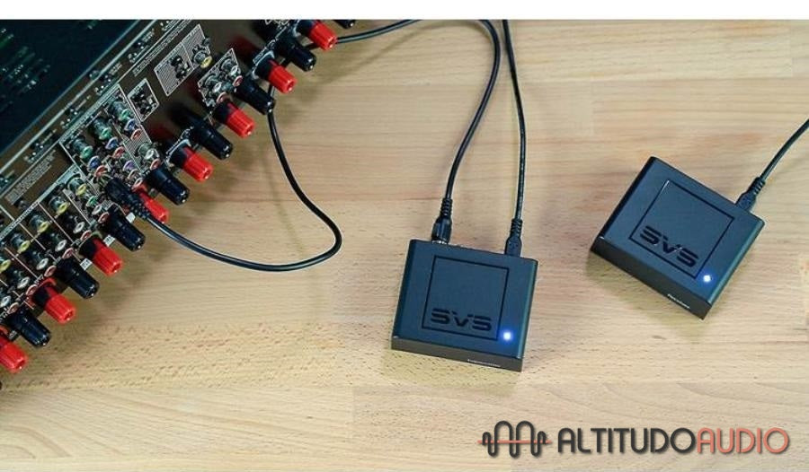 - The add-on wireless receiver will need to be manually paired with the wireless transmitter from the SVS SoundPath Tri-Band Wireless Audio Adapter system. Simply press the "Pair" button on the back of both products.