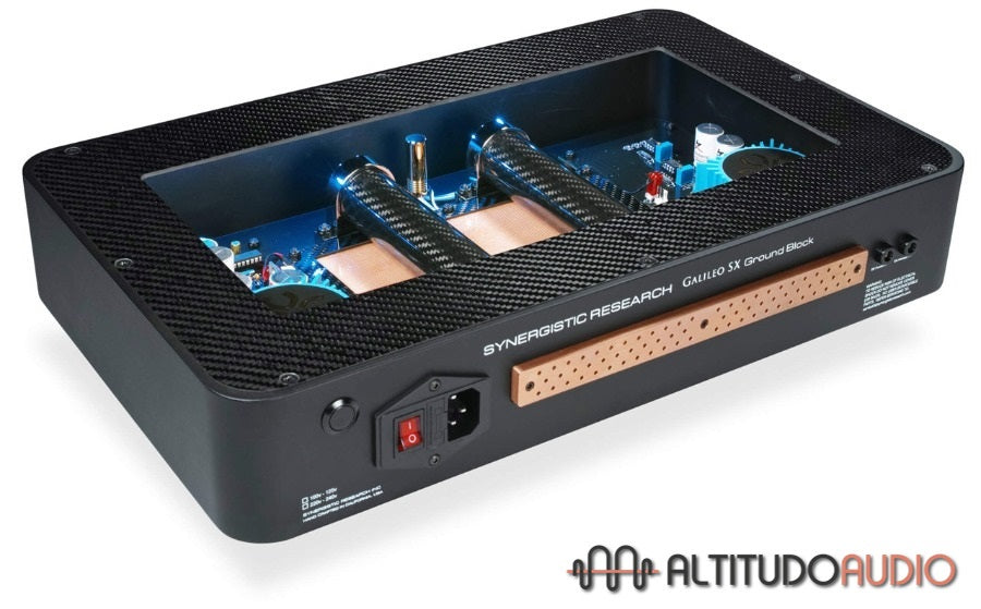 The chassis of the Galileo SX Ground Block Mk.II is machined from a solid billet of aluminum and carbon fiber to minimize unwanted vibrations and chassis resonance that can negatively impact your system’s performance. Inside, the Electromagnetic Cell features three Active Em Cells with Galileo SX PowerCell technology - two rolled EM Cells in carbon fiber housings to control resonance and one flat Carbon Fiber Electromagnetic Cell with a copper mesh Ground Plane.