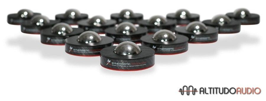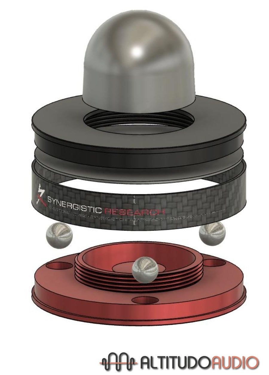 MiG SX footers are an evolution of SR's original MiG footers developed in 2008. SR starts with a new specially tuned MiG resonator, forged from high carbon steel and adds a precision-machined Aircraft Aluminum and Carbon Fibre three-piece chassis engineered to distribute vibration through a special tuning disc and a UEF tuning element into Carbon Tungsten ball bearings. For a bespoke match to your system, MiG SX has two placement options that re-tunes your component's resonance; choose between Ambient and Pin-Point configurations and pick the option that best suits your system on a component by component basis.