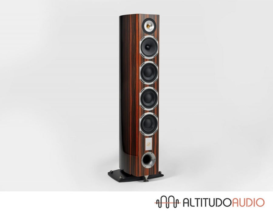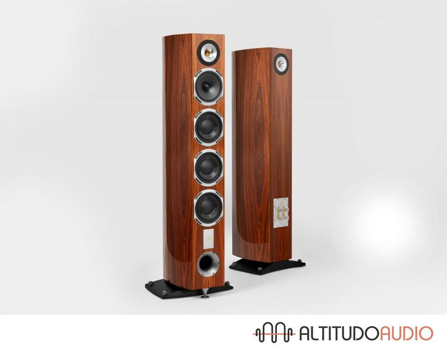 On the Quatuor 40th anniversary model, the addition of a rear tweeter that allows the speaker to radiate energy to the front and rear of the transmitting point, much like a symphony orchestra would. With this gain of energy initially lost off axis from the listening point, the sound volume is better distributed in front of the listener. This allows for easier placement of the speaker in the room and a stable and deep sound image with great openness without distorting the original signal.