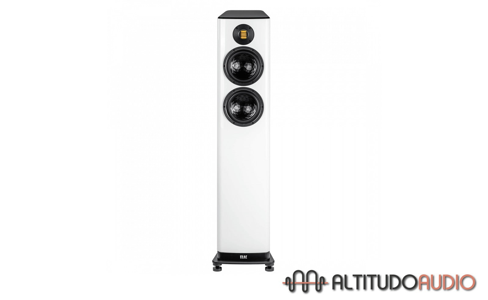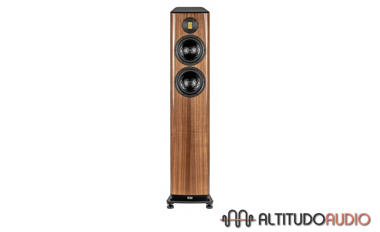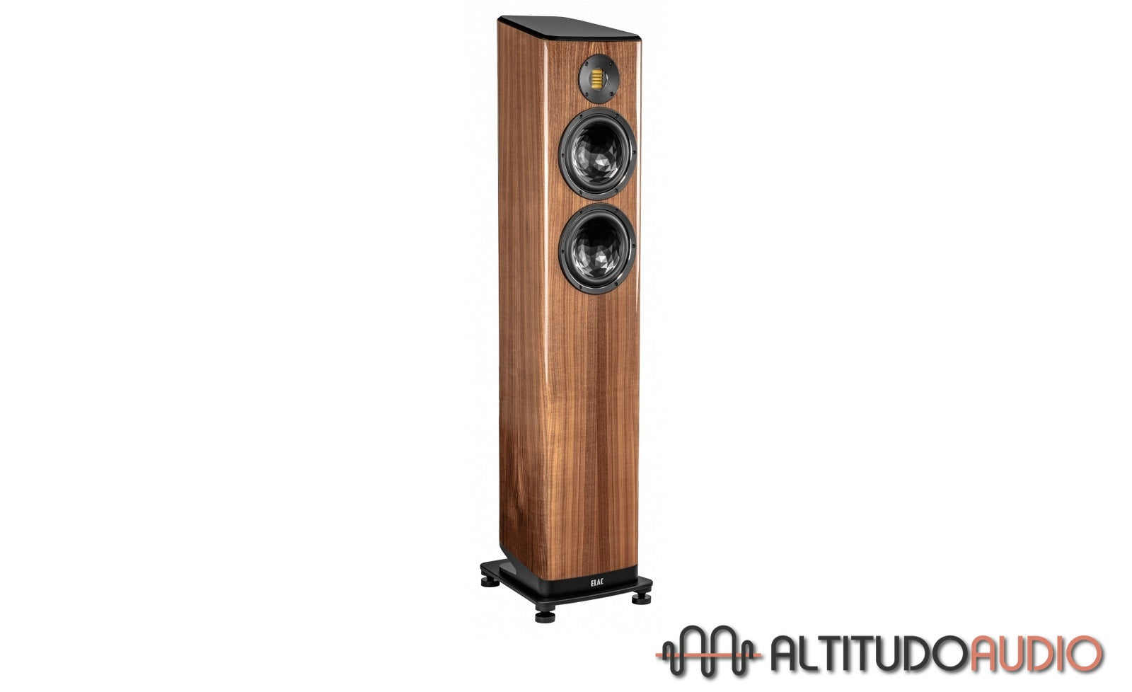 Meet VELA - A combination of technologies refined over 95 years of ELAC Acoustic engineering and design. High-gloss lacquered and wooden veneered cabinets with a visually stunning trapezoid shape that improves acoustics while making a profound visual impact. The VELA builds on the highly successful and high-performing Series 400 while improving stereo definition and multi-channel audio in modern furnishings.But the advantages are distinct. Combining a newly designed cabinet in combination with the crystal aluminum-sandwich woofer—and ELAC's inimitable JET 6 tweeter—this speaker is bound to make an impact.