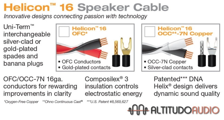 Enjoy the performance advantages of a DNA HELIX design in the amazingly flexible and open Helicon 16x cable. Originally designed for internal speaker wiring and DIY applications, this cable sounded so great that it provides unbeatable value as an external speaker wire as well. With twice as many OFC strand groups as the original Helicon 16, this cable sounds clearer and more dynamic. The 16 gauge conductors are also easy to strip and terminate with Wireworld banana plugs or spade lugs.