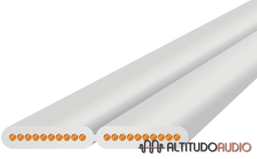 Wireworld's Horizon™ high-end flat speaker wire provides high value and ease of concealment. With 16 gauge Flexi-flat OFC conductors in flexible white insulation, this flat speaker cable is as thin as a dime (1.4 mm) and only 3/8” (10mm) wide, making it ideal for concealment under moldings and rugs.
